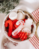 Our ‘candy cane marshmallow’ fragrance blends creamy sweetness with a soft whisper of peppermint. Notes of sugarcane and gentle musk create a cozy, dreamy scent that feels like a winter treat wrapped in warmth.