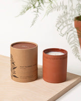 Terra is our all-natural candle collection made with plant-derived fragrance oils, 100% soy wax, and cotton-core wicks. Each Terra candle is meant to blend right in to your collection of plants and pots, housed in custom terra-cotta jars designed for reuse as a planter, brush holder, or storage once the candle is finished.
