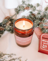 This candle is hand-poured and housed in a beautiful apothecary style amber jar with a black lid.