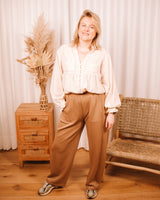• Camel colored ultra comfy pants with stretchable waistband