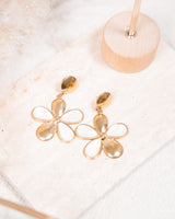 • Gold flower shaped earrings with pearly accents