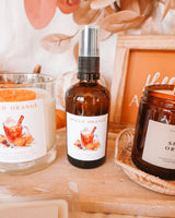 Our room sprays are hand-poured using high quality fragrance oils & ingredients that are skin-safe. The sprays are poured into a clear glass bottle with a white spray cap and clear lid.
