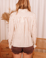 • Beige & orange striped blouse with ruffled details