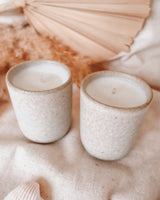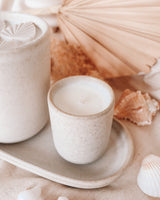 Introducing the 'Sand Storm' mini coffee mug candle, infused with our signature 'Beach Bum' fragrance. This mini mug subtly enhances any interior with a refined coastal ambiance. This mini mug is perfect for your morning espresso & is the best companion to its big sister and matching tray.