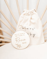Our plaques come packaged in our 'blaise baby' cotton drawstring bags.
