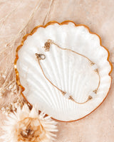 - Gold bracelet with white jade stones