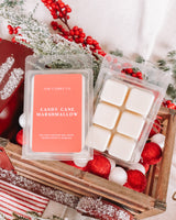 Our ‘candy cane marshmallow’ fragrance is a sweet & creamy scent with sugarcane and musk and a sweet hint of peppermint in the background.