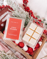 Our ‘cozy season’ scent has a festive fragrance that takes you on a magical spice-infused journey, capturing the cozy comfort of entering a holiday cabin.