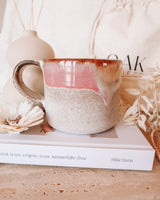 Meet our biggest coffee mug candle to date: 'melting ice cream'. This beautifully designed extra large mug with a pink & sky blue dripping effect is filled with a candle that transports you back to the joyful memories of childhood visits to your beloved candy store. Experience a vibrant blend of fruity florals complemented by a delicate touch of bubblegum.