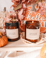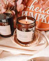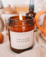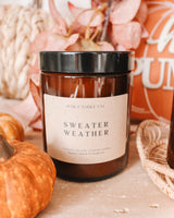 Take a walk in the forest, all cozied up in your favorite cardigan with fresh leaves falling and the wind blowing with our 'sweater weather' candle, housed in a beautiful amber glass jar. This fresh blend of white cedar and musk makes a delicious and cozy autumn fragrance.
