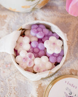 Experience a delightful floral fantasy with our violet candy wax melts. The fragrance opens with the soft, powdery scent of violet petals, intertwined with the refreshing greenness of violet leaves and flower greens. As the scent blooms, delicate floral notes of iris add depth, while a subtle rosewood accord introduces a smooth, earthy warmth. This sophisticated blend balances sweet, candy-like elements with the elegance of fresh flowers, creating an inviting and enchanting atmosphere. Melt these wax melts to infuse your space with the perfect harmony of vibrant florals and calming greenery, offering a soothing yet playful ambiance.