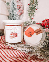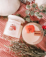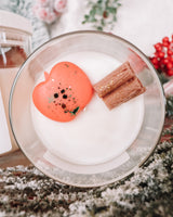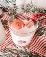 Our candles are hand-poured and topped with handmade wax melts, so every candle is unique and different (one of a kind). Since we use a natural coconut soy wax, frosting or small imperfections are normal. This candle is housed in a clear glass jar with a white wooden lid.