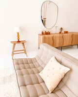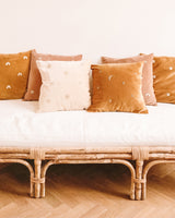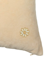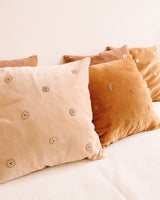 - This marvellously soft velvet pillow has a playful design with embroidered daisies made of mother of pearl. In combination with its warm color it will give you that cozy feeling of long nights at home together with your loved ones. Choose one pillow as an eye catcher or pile them together with the other pillows from the collection to create an ultimate cozy nook.